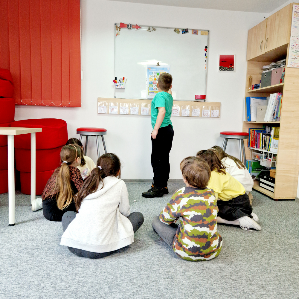 Desfășurăm cursurile în grupe restrânse, într-un spațiu modern și primitor din Ploiești, unde fiecare copil se simte confortabil să facă greșeli, este încurajat să învețe și progresează în ritmul său natural.